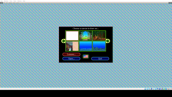 download the Flying Colors program and the background canvases and the animal pack from this site: (your browser might warn that the animals.ART and canvases.ART files are dangerous or suspicious. Just download them anyway). 😈