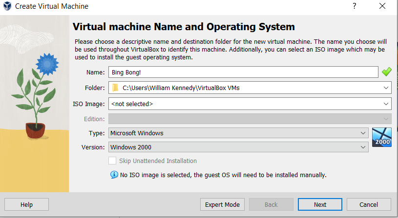 - Make sure its Type: Microsoft Windows, Version: Windows 2000