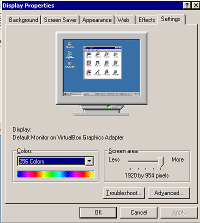 according to the download site, if you just right click the program file, and set it to 256 color mode, with compatibility for Windows 95 it ~should~ run just fine. I DID get that to make the program run, but…. the beautiful color cycling doesn’t work. As far as I can tell, this has something to do with the 256 color thing. If you have a Mac machine, trying to run an .exe just wont work. Below is a more step by step method to getting it to work universally by using a Virtual Machine. We will be basically be running Windows 2000 inside of our computer.